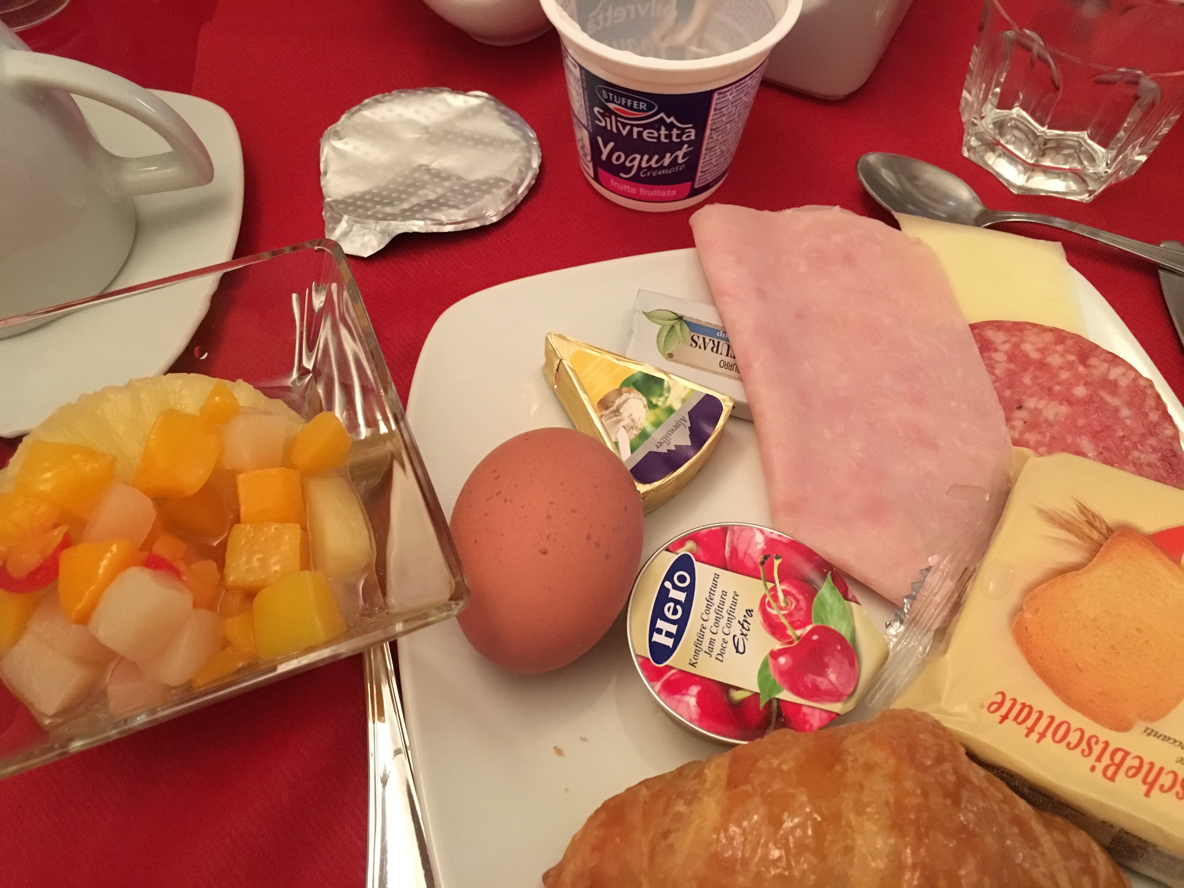 The croissants were AMAZING! And the salami and ham were delicious as well. We both commented that we had never seen such a yellow yolk inside of a hard boiled egg before! Of course I also had to have some coffee – Americano this time.