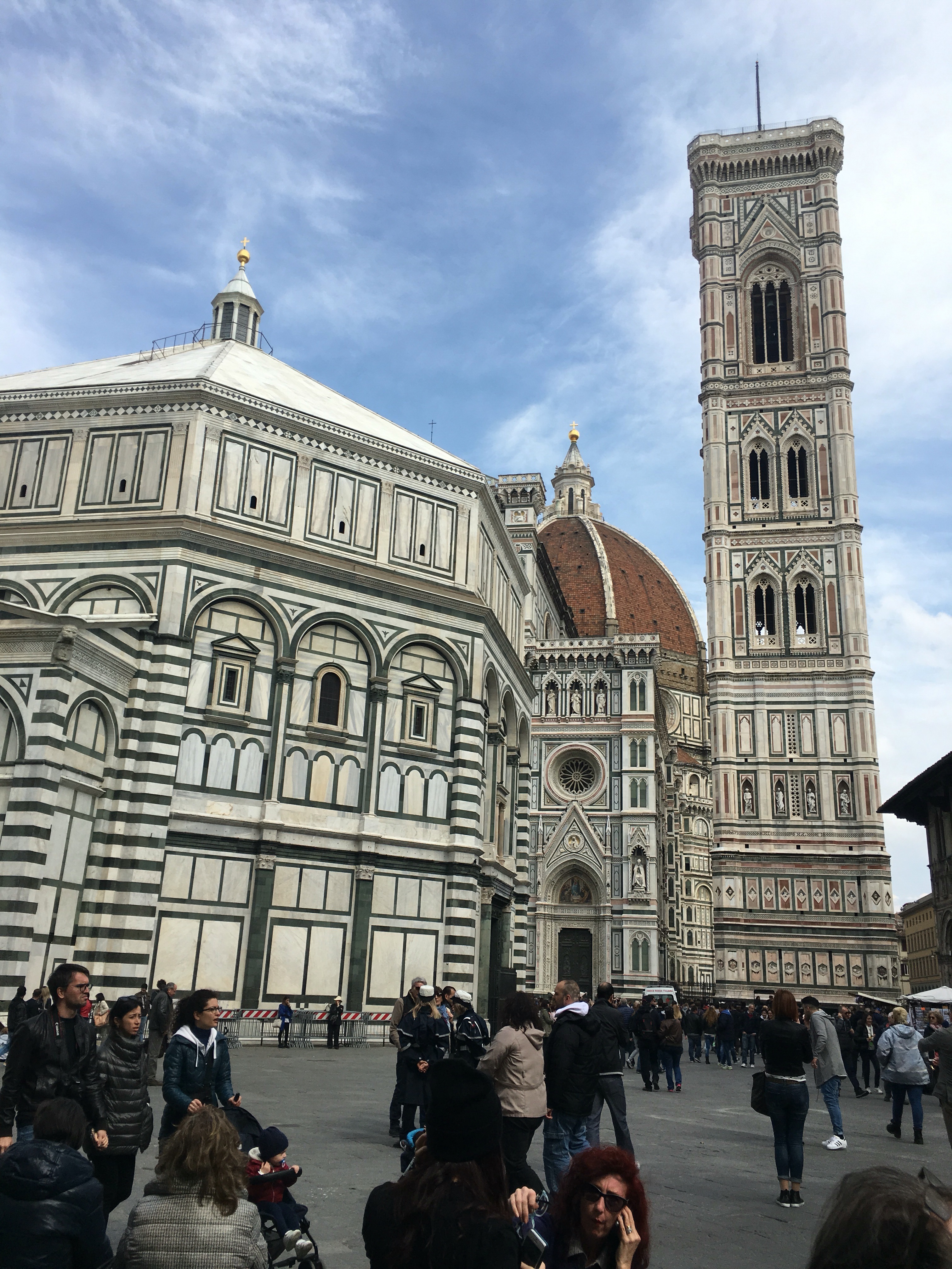 We got up this morning and had breakfast at the Villa. We were out the door at 8:45 with the Sienkiewicz family to head to Easter Mass. We left early so that we could get down to the Duomo to see the Easter Parade. There is a tradition here in Florence called The Explosion of the Cart where during the Gloria at Easter morning Mass this giant cart that is filled with fireworks is set off. The Mass we were going to was right in the middle of the explosion so we didn’t get to actually watch the explosion, instead we went down early to watch the parade. The cart was pulled by four GIANT white oxen throughout the streets of Florence and ends in the Piazza in front of the Duomo.