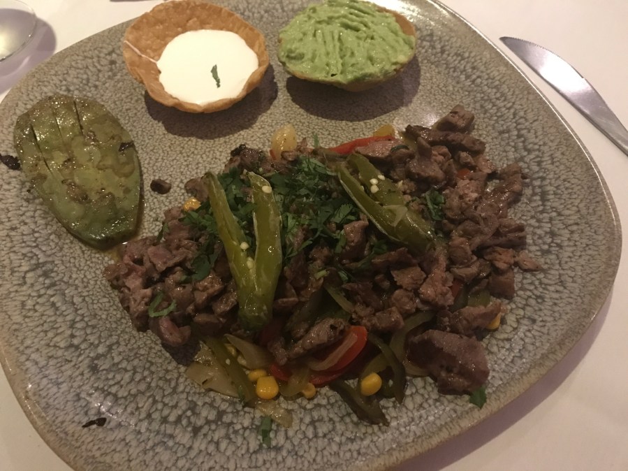 We then made our way to meet Gerardo and just as we arrived at our meeting point his car pulled up, it was perfect timing!! We hopped in the taxi and made our way back to the hotel. We spent a few hours in the room just relaxing and then went downstairs for an “early” dinner. (Note this was about 6:30, which is normal for Americans, but about an hour and a half too early for Mexico, so we were one of the only people in the restaurant!). We went to a steakhouse located inside the hotel, Abby had a burger that was bigger than her face, and I had steak fajitas, it was all very delicious! We had pesos left to spend so we decided to split a dessert and got “pastel de queso” (aka cheesecake)!