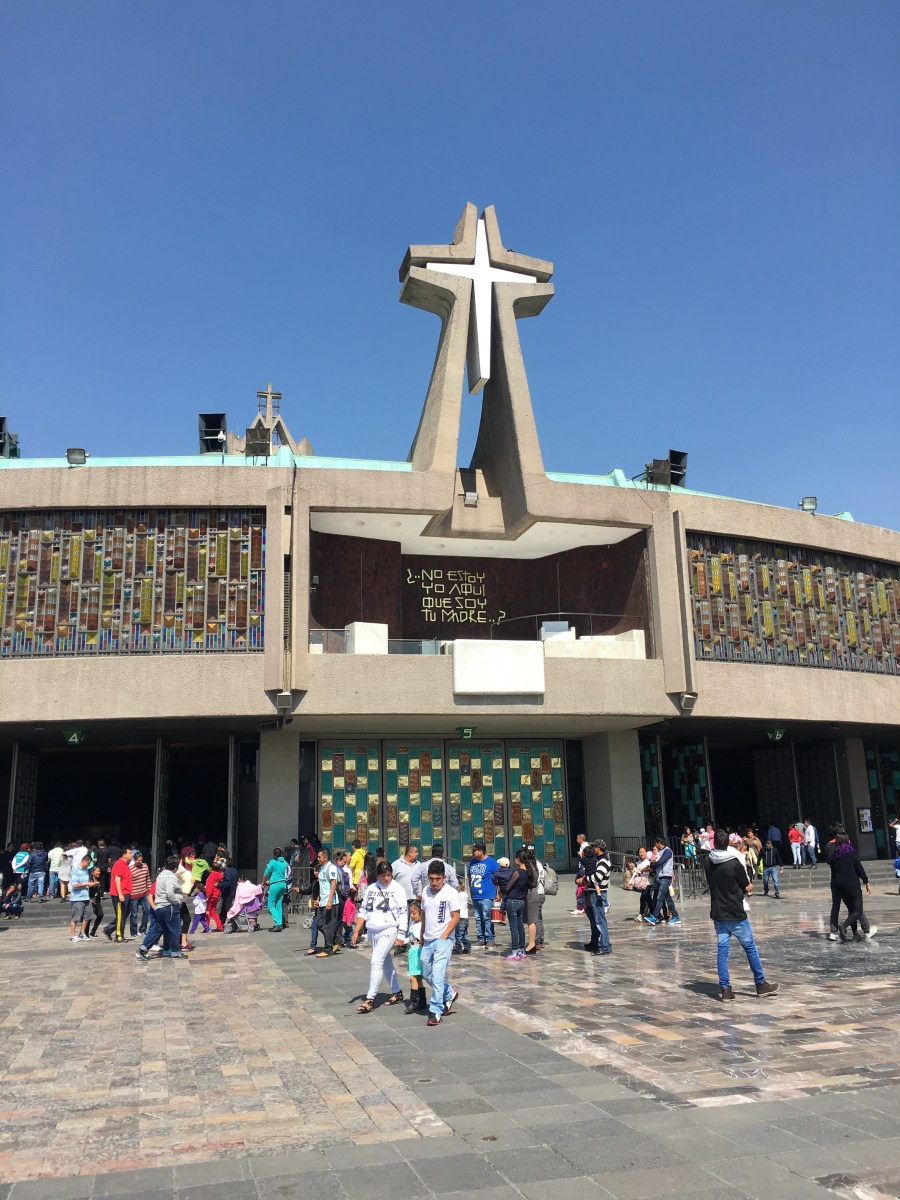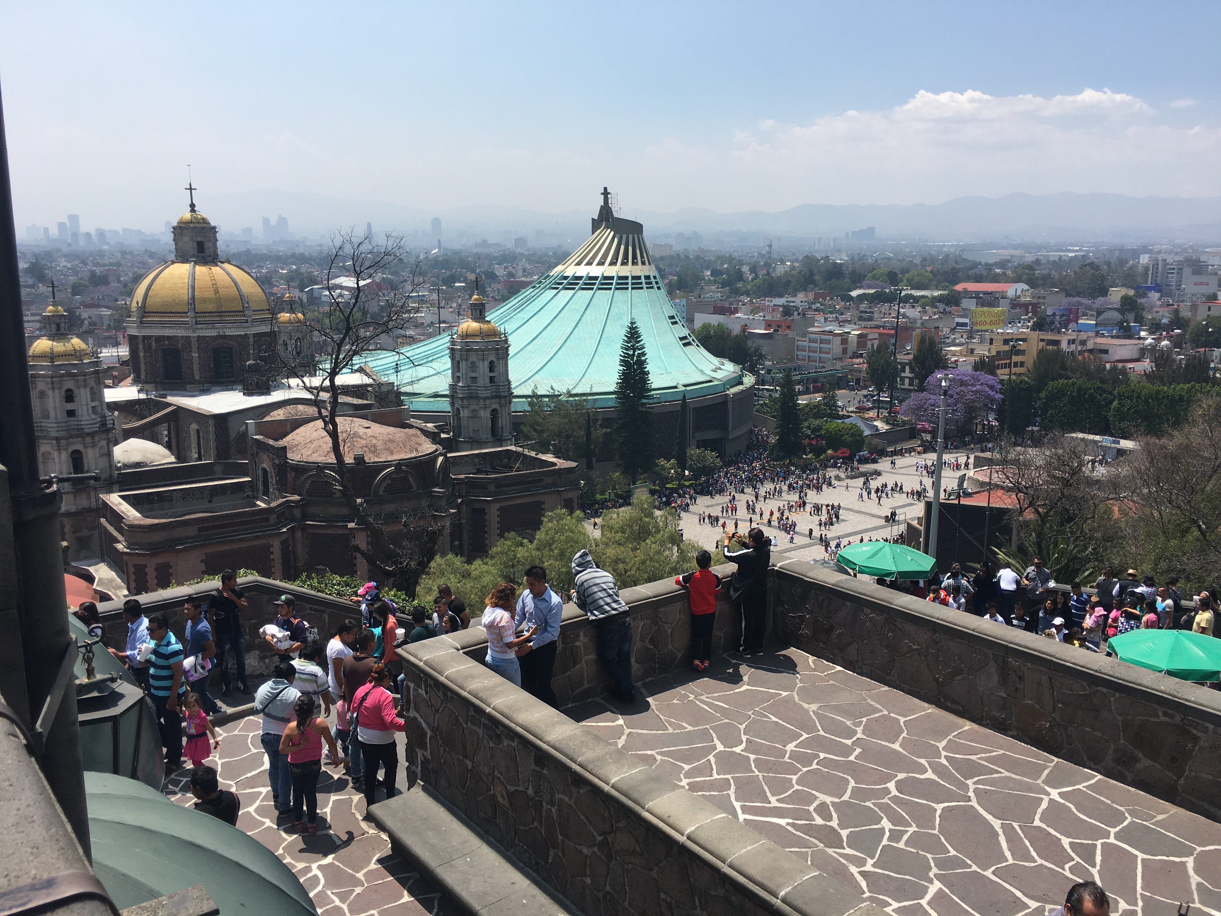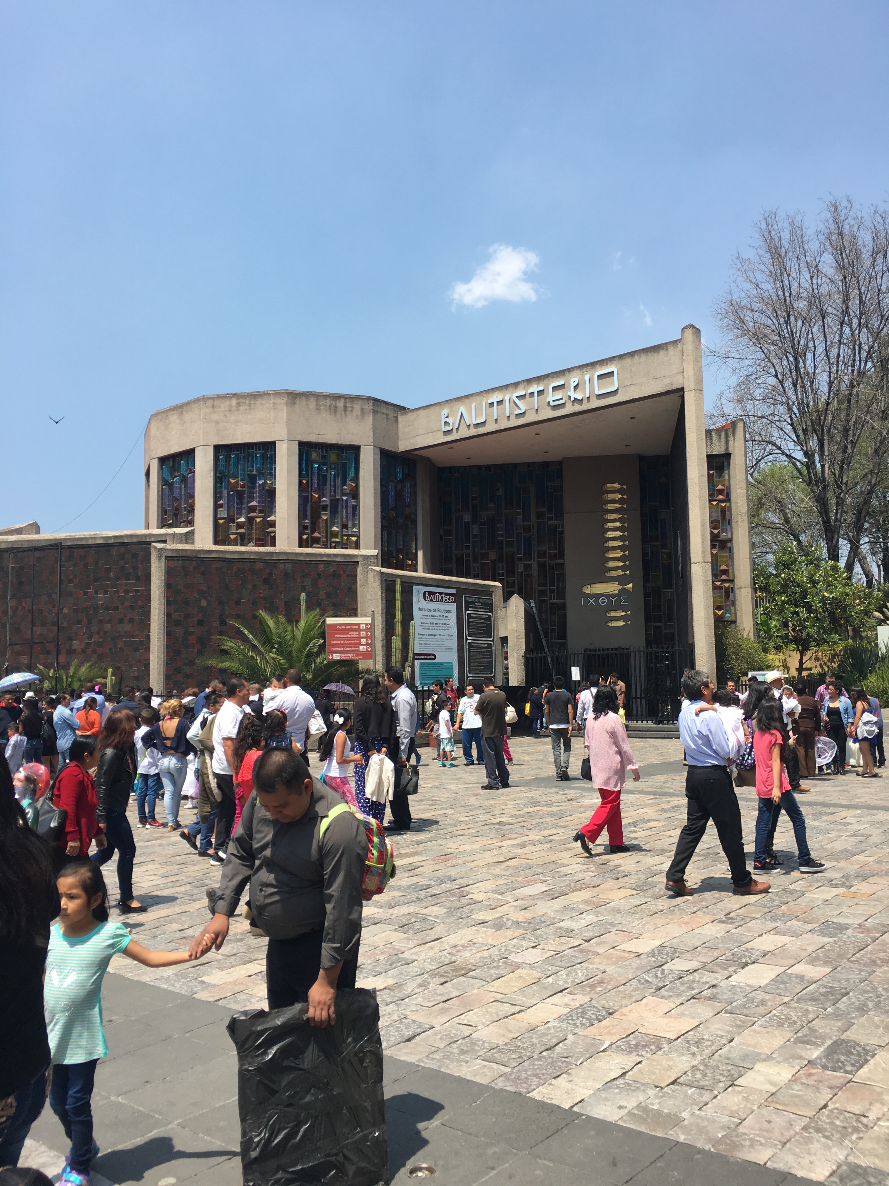 After breakfast we went back up to the room quickly to grab our belongings that we needed for the day. At around 10:00am we went downstairs and had the hotel call us a Taxi. Our driver’s name was Gerardo and he was extremely helpful and gave us some instructions on the best way to view everything at the Shrine and even offered to come back and pick us up whenever we were ready to head back to the hotel. I think we confused him though because he said he would come around 1:00 to pick us up and we asked him to come at 3:00 instead. He was a little perplexed by the idea of us actually spending all five hours at the Shrine, but he clearly doesn’t know Abby and I very well! 😂😳 On the way to the Basilica we came across a group of pilgrims walking down the street being led by a Mariachi Band! I suppose that served as the reminder that we were still in Mexico for today!