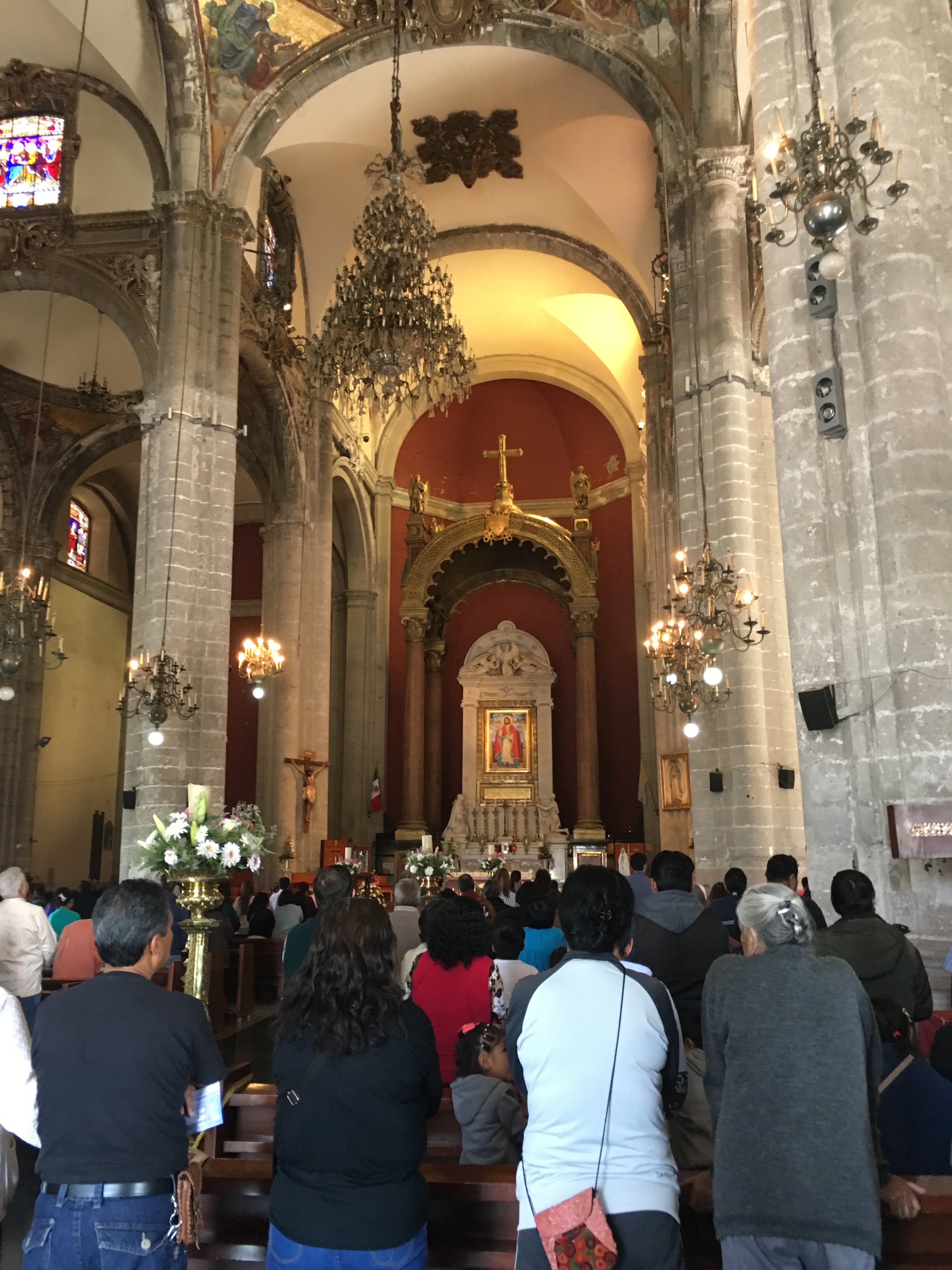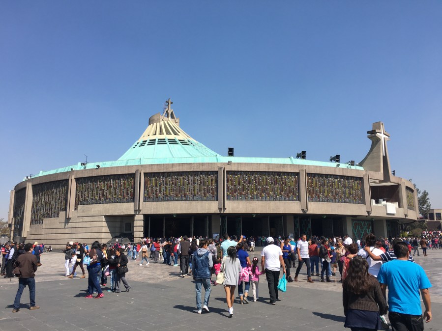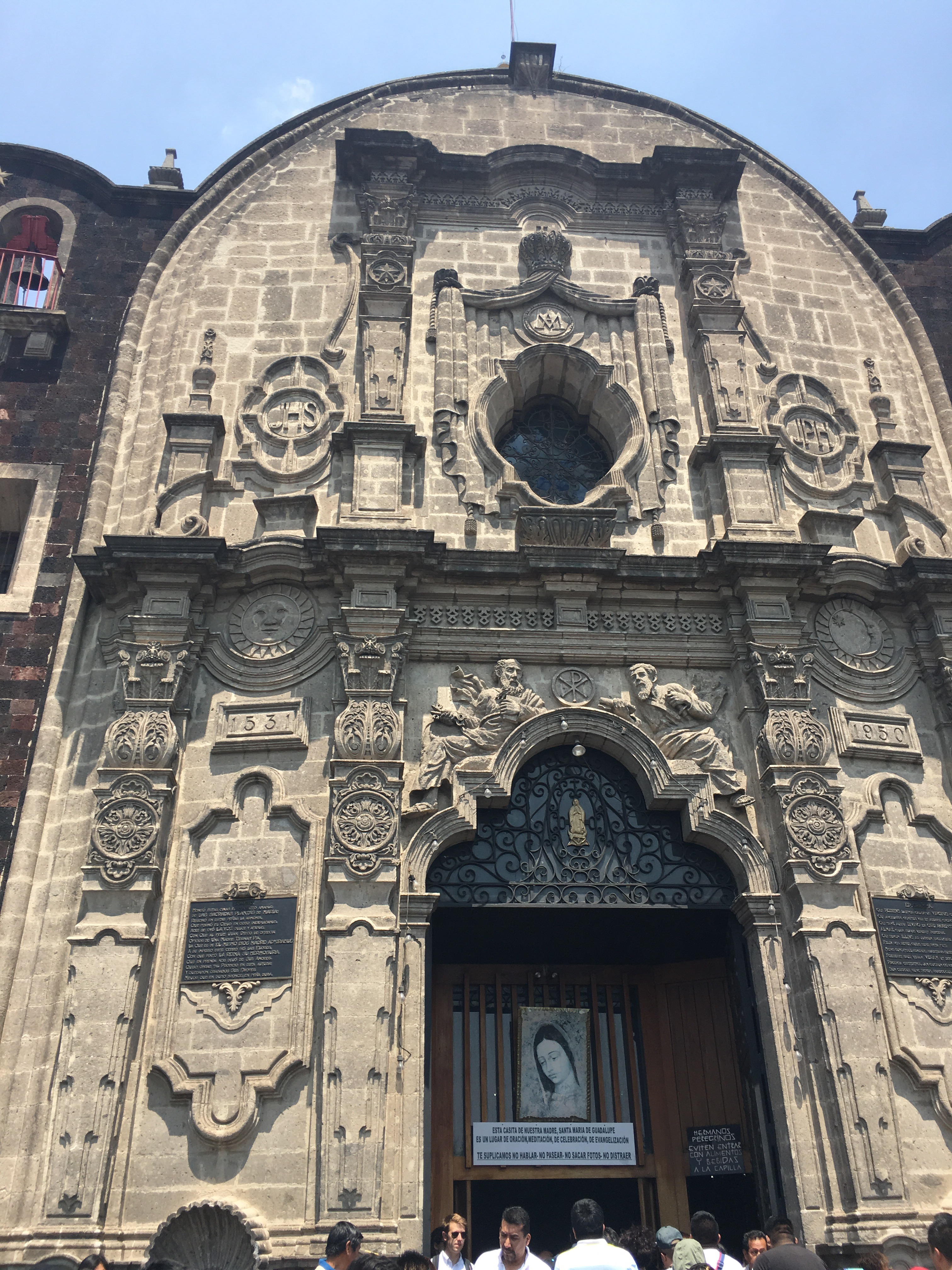 After breakfast we went back up to the room quickly to grab our belongings that we needed for the day. At around 10:00am we went downstairs and had the hotel call us a Taxi. Our driver’s name was Gerardo and he was extremely helpful and gave us some instructions on the best way to view everything at the Shrine and even offered to come back and pick us up whenever we were ready to head back to the hotel. I think we confused him though because he said he would come around 1:00 to pick us up and we asked him to come at 3:00 instead. He was a little perplexed by the idea of us actually spending all five hours at the Shrine, but he clearly doesn’t know Abby and I very well! 😂😳 On the way to the Basilica we came across a group of pilgrims walking down the street being led by a Mariachi Band! I suppose that served as the reminder that we were still in Mexico for today!