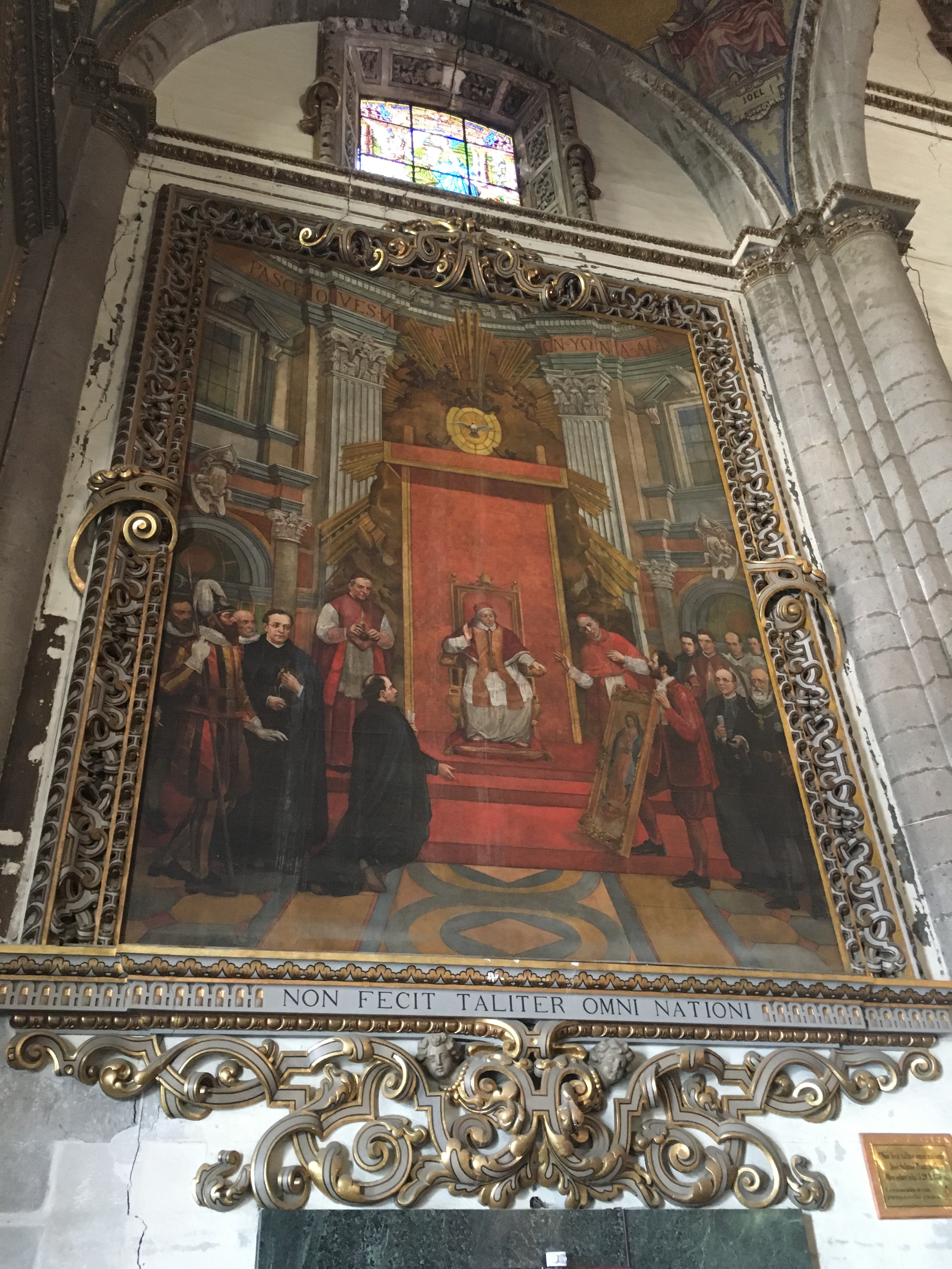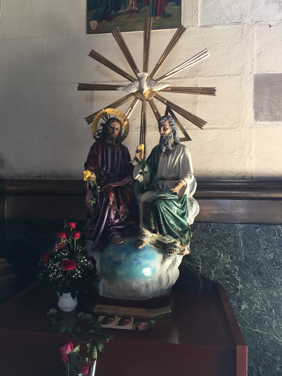 The mural behind the Tabernacle depicting the Trinity was also very beautiful, in the top left you can see God the Father’s hand descending from Heaven. In His hands are flames representative of the Holy Spirit being poured down upon the faithful. You can also see Jesus and the cross just below the Father’s hands.
