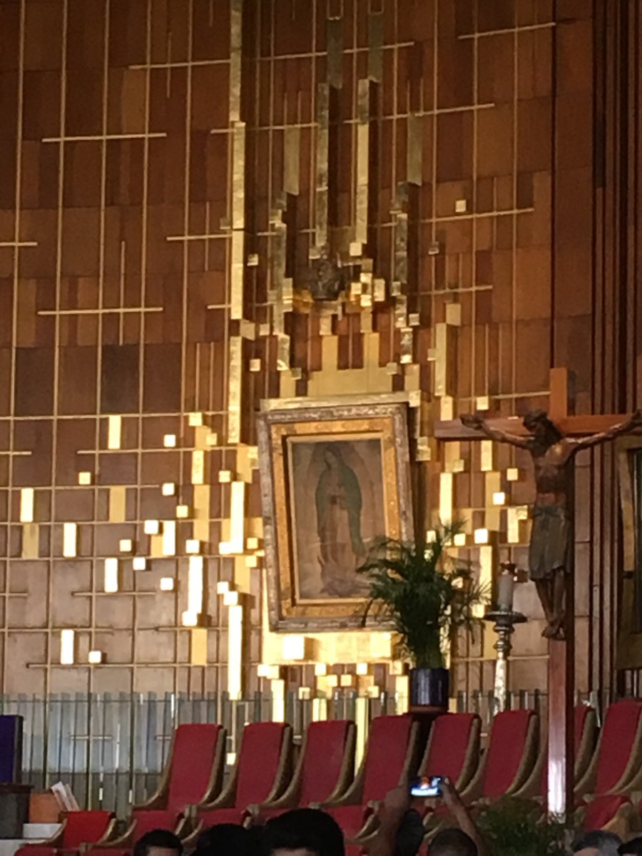 Next we made our way over to the New Basilica where we attended Mass. Somehow we got lucky and got seats in the second row and had a pretty good view of the altar and of Our Lady of Guadalupe. It is beautiful how at home I always feel inside of a Catholic Church. It doesn’t matter if I understand the language or not, knowing that there are 100s or in today’s case 1,000s of others who have the same beliefs as me all worshipping God together is amazing to witness! That is what is so beautiful about the Catholic Mass, it doesn’t matter what country you are in, or what language the Mass is in you can still understand it because the structure of the Mass is the same and the readings for the day are all the same across the globe.