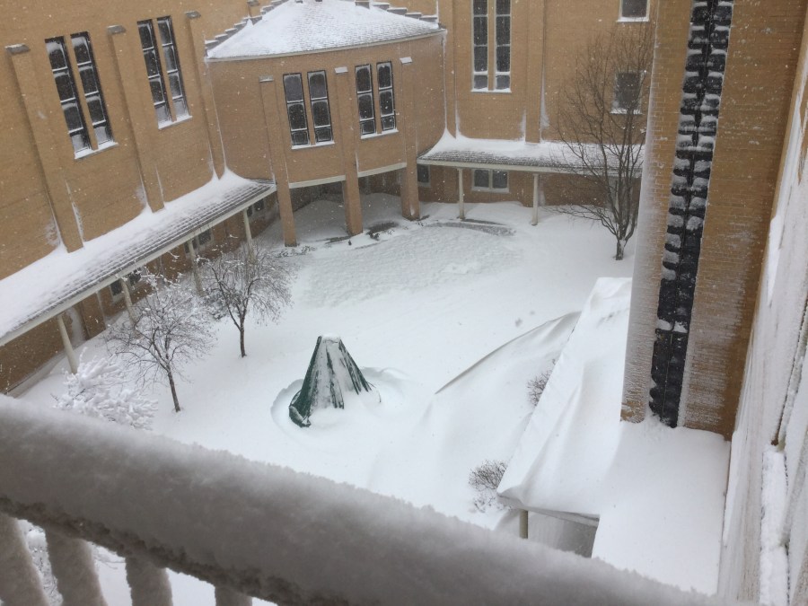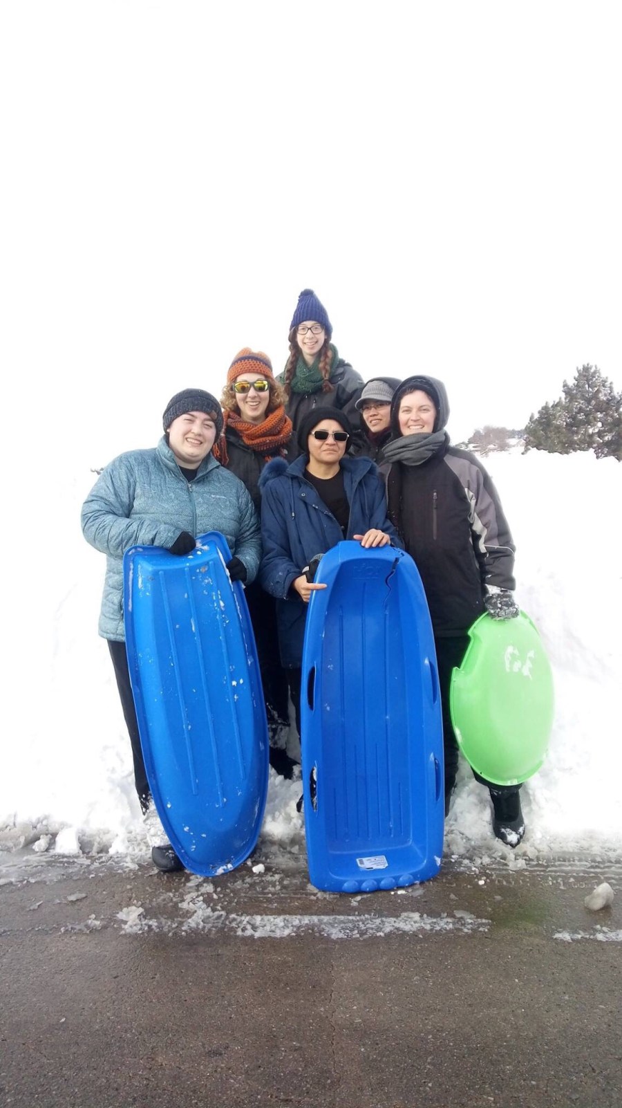 While there is a pretty basic structure to everyday, it also changes and varies quite a bit day to day just depending on what is going on. For instance, one of the first weeks here we had quite the blizzard (12 inches, but the drifts were anywhere from 12-22 in areas) and many of our employees in housekeeping, laundry and the kitchen were unable to make it in, so we have to adapt and just go wherever is necessary to make sure everything is covered to an extent. We also like to have fun, so that same week we took an afternoon off from class and went sledding. There is a sister here from Brazil on assignment and she had never seen snow until moving here, so we convinced her to come sledding with us, and she LOVED it!