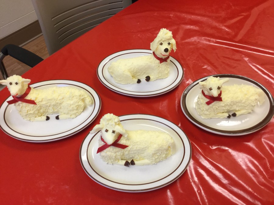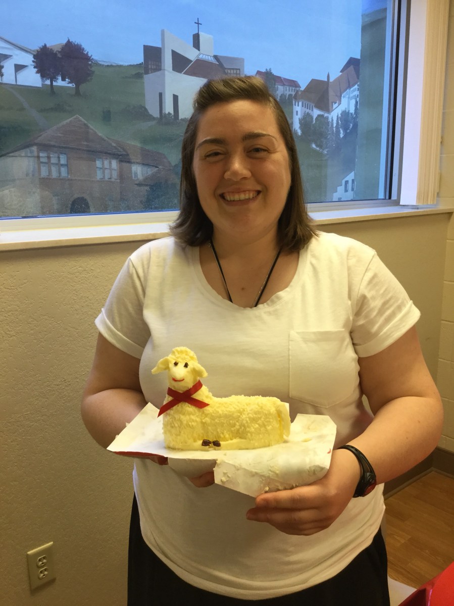 As we entered into Holy Week there was a lot of prep work that had to be done around the monastery to get ready for all of the liturgies and the reception after the Easter Vigil. One of the tasks that formation was assigned was learning how to make butter lambs. Sr. Paula spent an evening with us teaching us the art of molding the sticks of butter into lambs. Trust me when I say it is harder than it looks or sounds! We had many laughs during the process, but in the end we all had a lamb (or in Teresa’s case, a poodle! π)