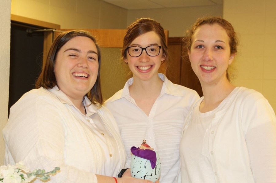 Myself, Laura and Teresa…and Jesus popping out of an egg!