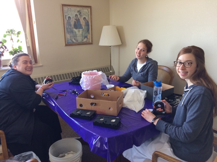 One of the big projects that formation has been working on since I entered was organizing and cleaning out the media library. We had hundreds of VHS tapes that were either duplicates of DVDs we now own, were self recorded from the TV by sisters over the years, or were just really outdated, like “Nursing Practices” produced in 1970…
