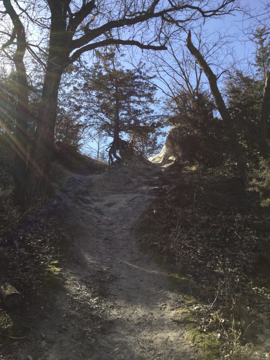 A giant hill with a tree at the top that I am not sure how it is still alive! Look at those roots!