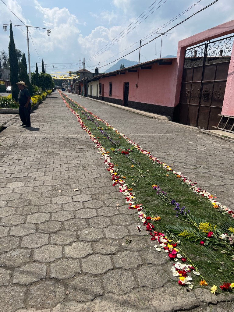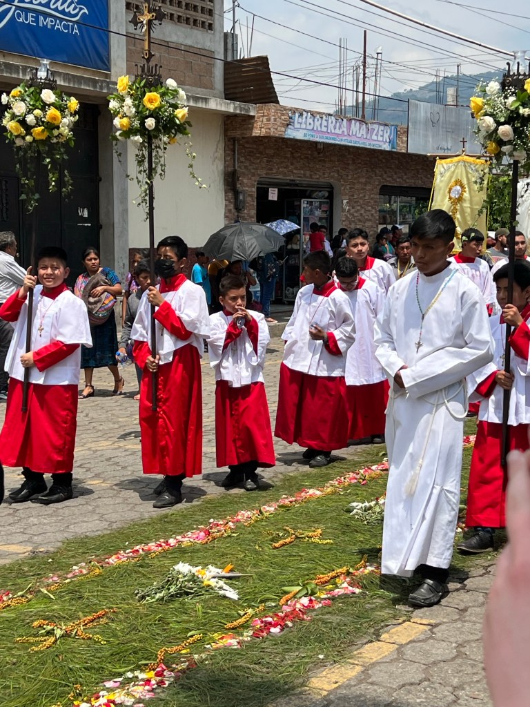 It only took about an hour to finish the roof and then we were able to join the people of Parramos for their Corpus Christi procession. It was so unlike anything we would see in America, fireworks, bands, thousands of people processing before and after the Eucharist. The procession was led by all the children making their first communion. It was beautiful to see. Parramos is a smaller town so their procession took 1-2 hours but one of our interpreters was saying that the procession in San Andres Itzapa could take 3-4 hours as they walk through all of the streets. The procession path is lined with a carpet of fresh pine needles and cut flowers as a path for the priest to carry Jesus on. It was a very beautiful and moving experience to see people of all ages, babies up to elderly people processing in the streets.