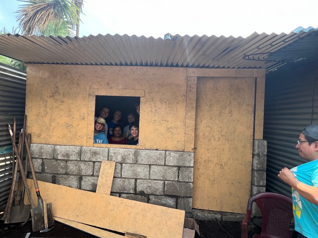 Breakfast was at 8am and we had ham omelets, chocolate pancakes, cereal, beans and tortillas. After breakfast we left the convent and went back to the locations of the tiny homes to finish those off. There wasn’t much left to do, we built the door and a window and got those secured. Emiliana, the woman who we built the home for was so excited to have this place for and her two children. She gave all of us hugs and just kept saying “Thank you, may God bless you.” On the way back to the bus we stopped and a few girls bought mangos and papayas. We also stopped for ice cream.