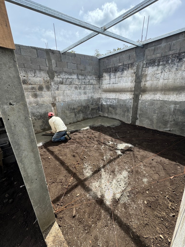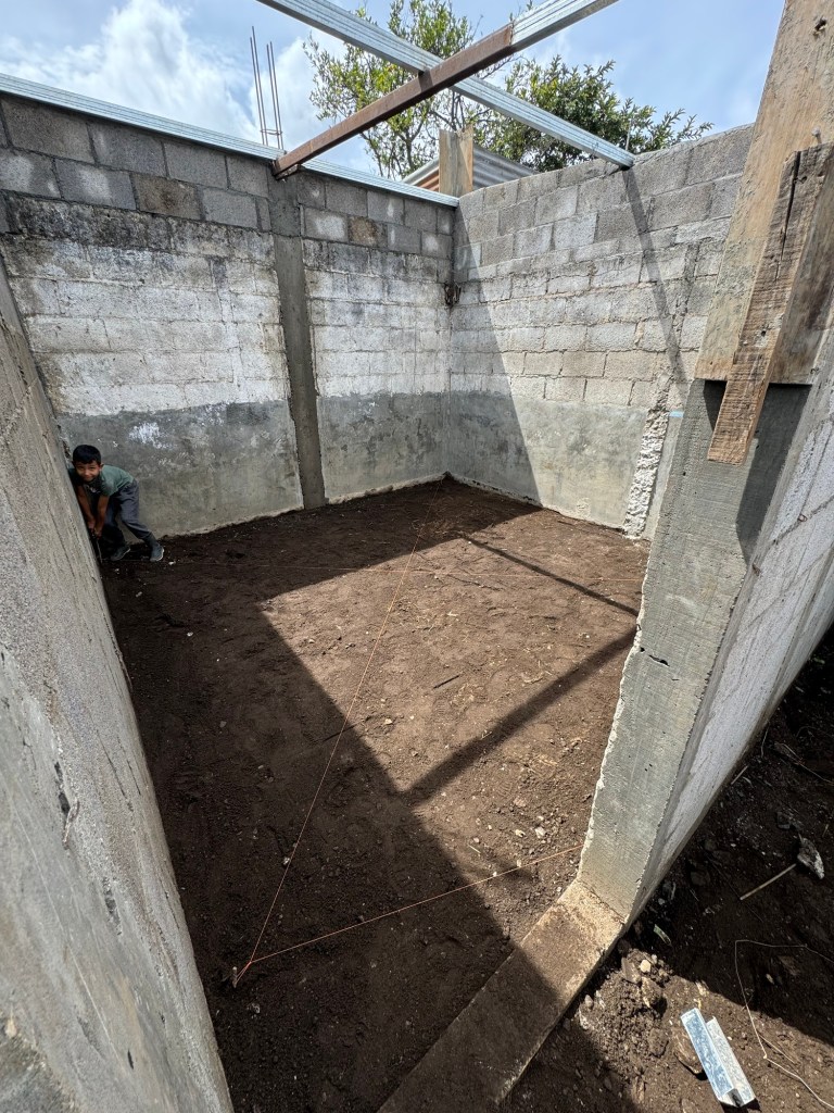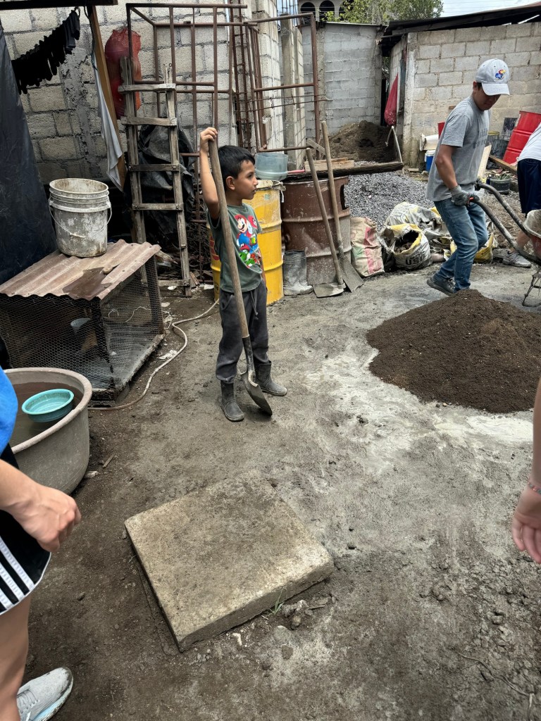 There will be three people who live in the home. The father/husband is Adreen (not sure if I spelled that right), he actually does concrete work for a living so he was a ton of help to us today and pitched right in to assist! The mother/wife is Andrea – she is part of the women’s program that Yeimy runs. And the son, Aaron is 8 years old and LOVES to talk. He was talking my ear off all morning, even when I didn’t have a translator, he just kept talking, not waiting for a response from me! He loves playing soccer and football and has a pet bunny named “Chispas” (which loosely means “Chocolate Chip”).