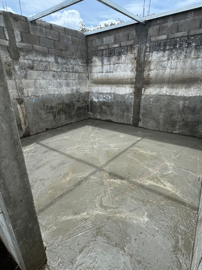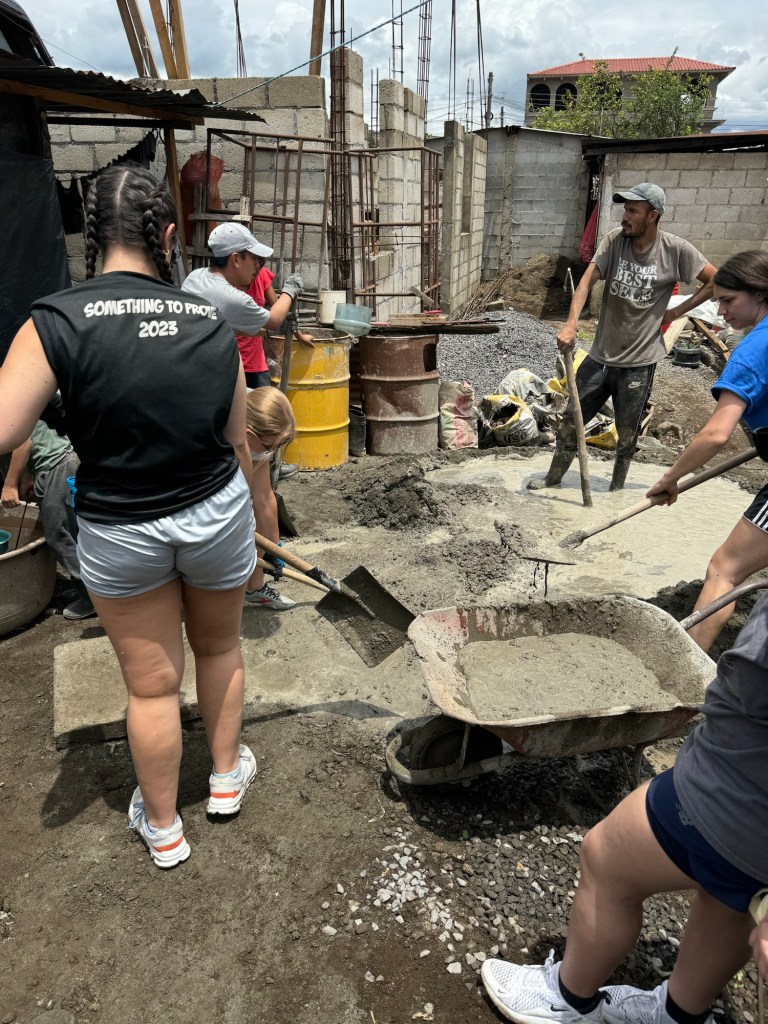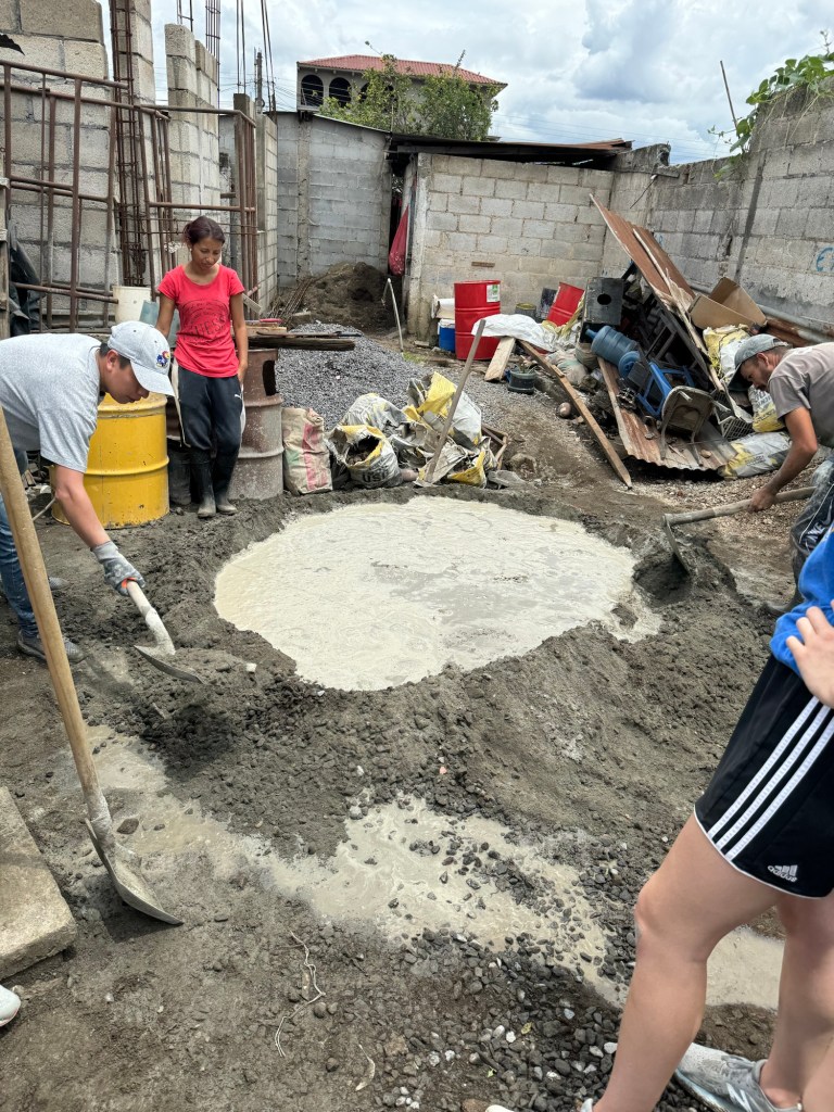 Today marked the first “real day” of work in the sense that it was a lot of manual labor. We began in the morning in Parramos with building tiny houses for 6 families. Two of the families have been waiting for almost three years to receive a house and so because of that they are getting a bit of an “elevated” home – meaning the walls are all cinderblock (versus half cinderblock and half ply-wood) and they are getting concrete floors (verses packed dirt). My group was one of these “elevated” houses so we spent nearly 4 hours mixing and pouring concrete by hand.