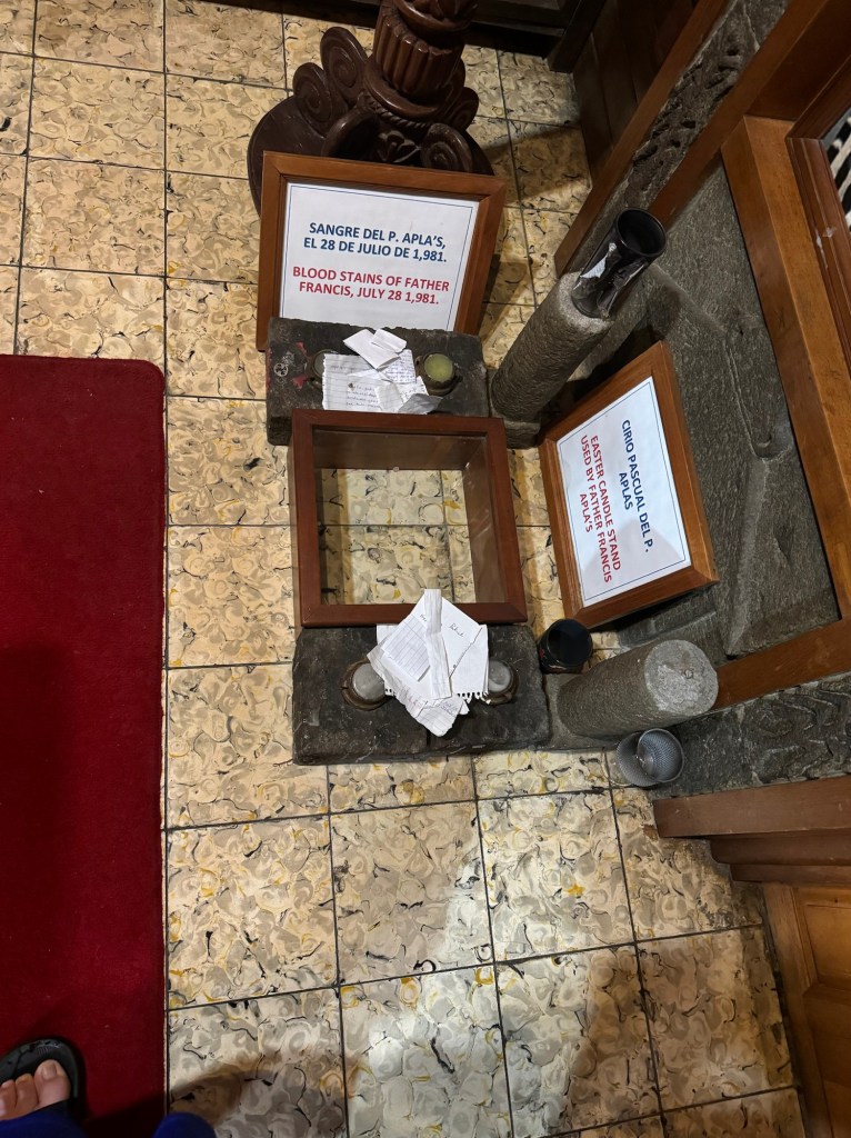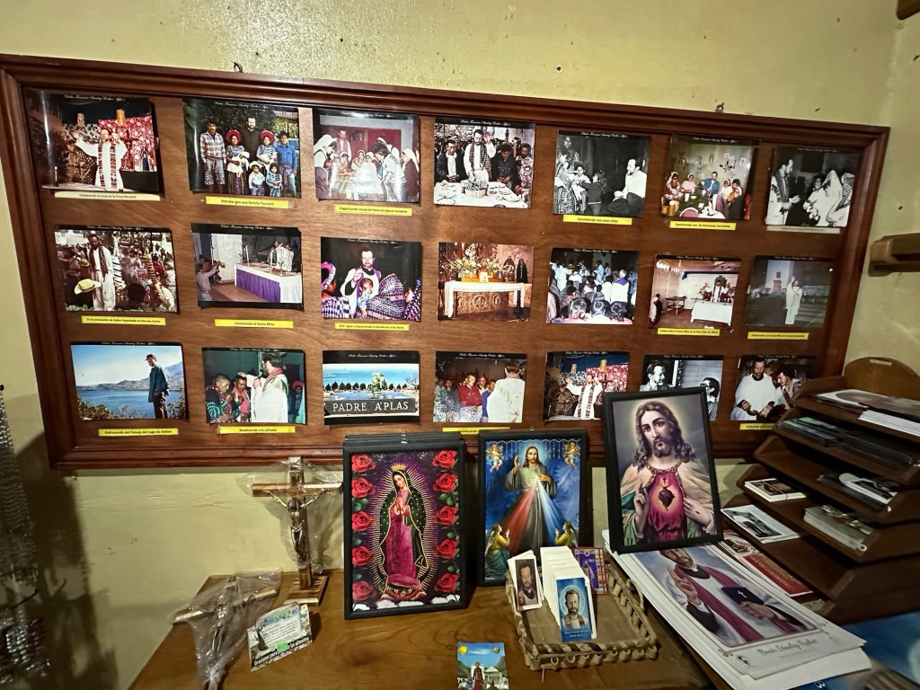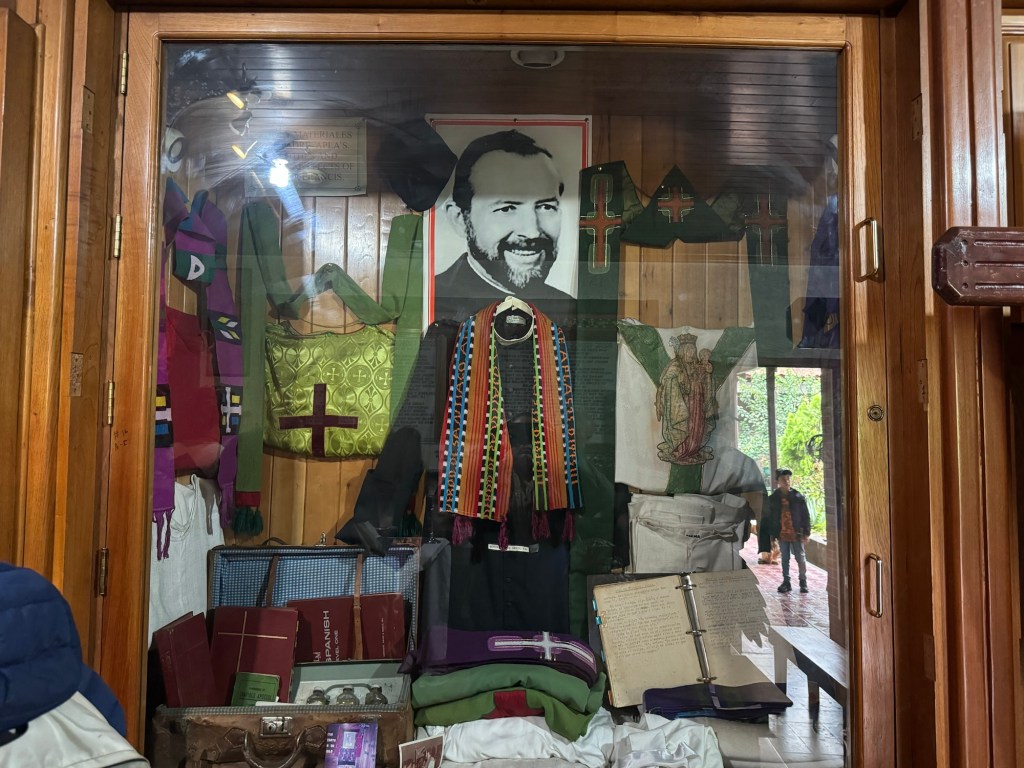 After Mass we had an opportunity to tour the rectory (fancy word for house) where Blessed Stanley Rother lived and was killed serving the Guatemalan people. (More on Blessed Stanley Rother can be found at the end of the blog – but in brief he is from Oklahoma and volunteered to come serve the people of Santiago Atitlán for years. During their civil war, he was killed and his cause for canonization is currently being investigated!) we also had a chance to pray at the place where his heart is buried. When the civil war escalated and Fr. Stanley was placed on a hit list, he was forced to return to Oklahoma by his bishop, but after only a short time he told his bishop “my heart is in Guatemala with my people” and so he returned to Guatemala where not long after he was killed. Because of this love for his people they requested to keep his heart while the rest of his body is buried in Oklahoma.