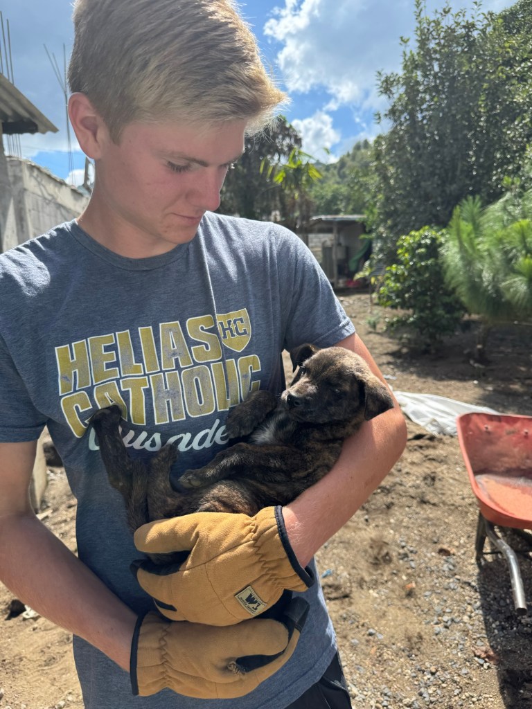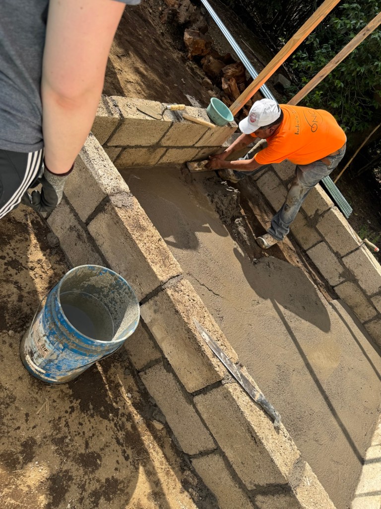After lunch (around 2pm) we loaded the bus and drove about 10-15 minutes to a small village called Corrales. It is technically part of San Andres, but is in a more “rural” area so to speak. We went to the home of three siblings in order to help build a chicken coop for them. Today was just part one of that project, so we placed the cinder block foundation, put in the posts that will hold the chicken wire and roof and then poured a concrete floor. I’m always amazed at the work the masons are able to do with their hands…no fancy electric tools, just shovels, buckets and every once in a while a machete! The family had the cutest little puppy named Rex that we got to get some puppy cuddles in with as well! My group today consisted of Edy and Brandon (our masons who help us build everything), McKenzie (our interpreter who I happen to know from back home, we have mutual friends and went on a bachelorette party together last summer), dad, Lilly, Eli and Noah.